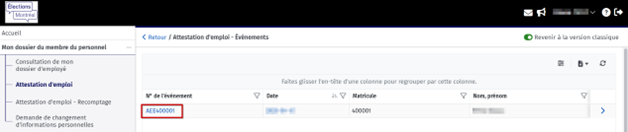 Cliquez ensuite sur le numéro de votre attestation d’emploi.
